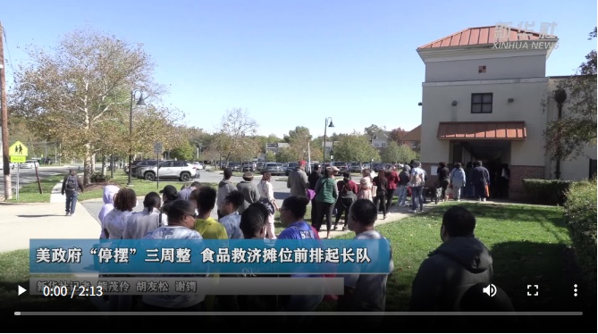 当地时间21日,美国联邦政府关闭三周。同一天,记者目睹无薪联邦工作人员在华盛顿特区的一个救援中心排队数十英尺,领取免费食物以满足“紧急需求”。